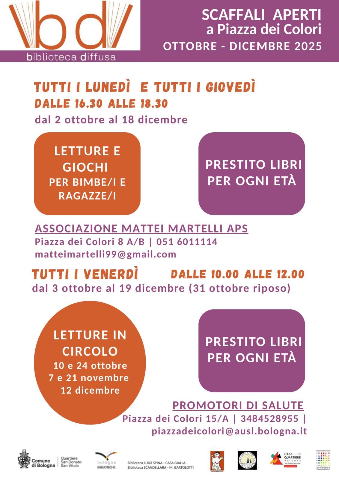 L’Ufficio Reti e Lavoro di comunità del Quartiere San Donato-San Vitale e il Settore Biblioteche e Welfare culturale del Comune di Bologna promuovono insieme la conoscenza delle risorse, dei servizi e delle attività delle biblioteche di pubblica lettura in spazi alternativi, per creare occasioni di inclusione e socializzazione intorno al libro e alla lettura e rafforzamento dei legami comunitari nel Quartiere.
