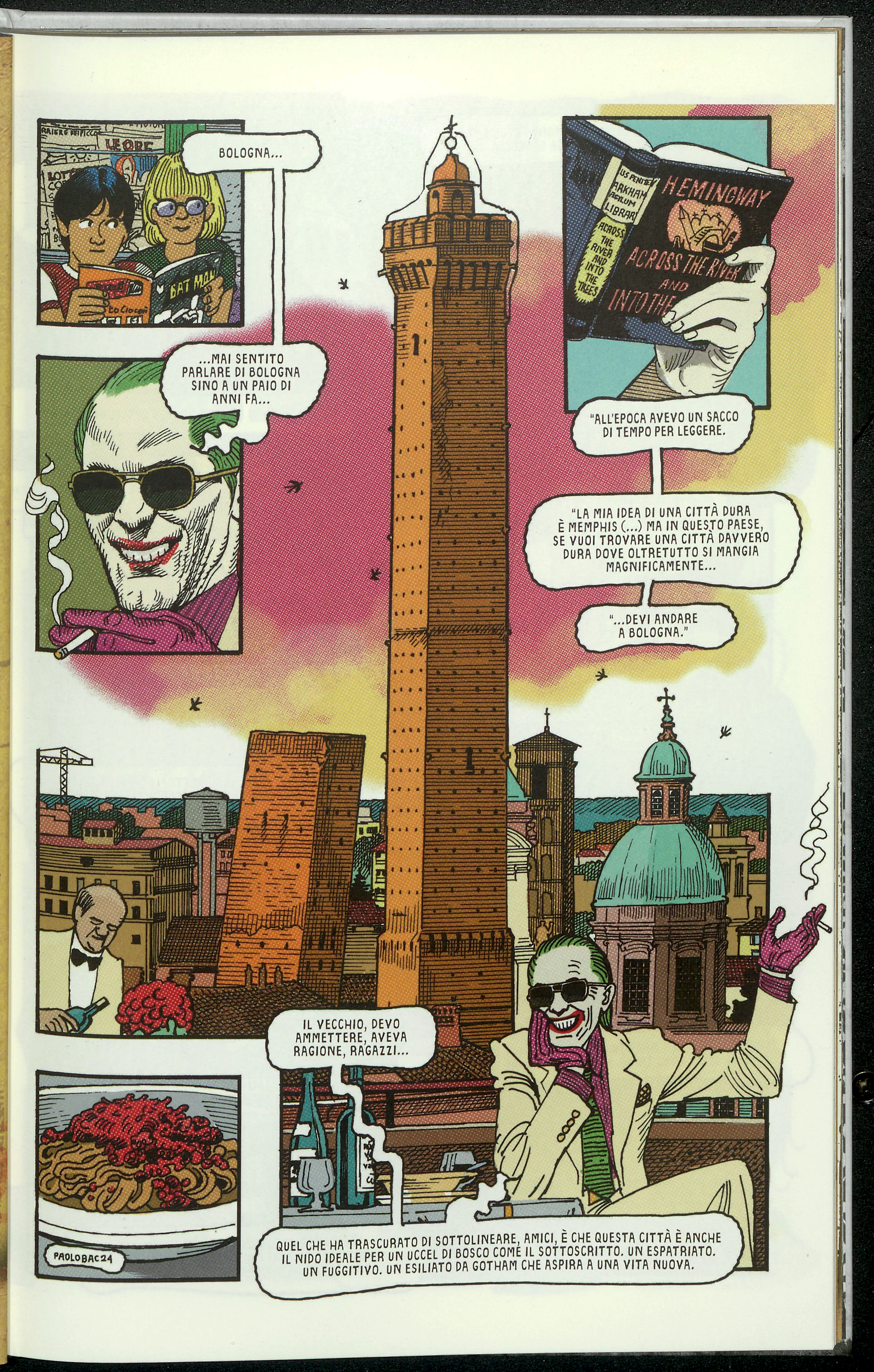 Nel 2024 questa operazione viene riproposta mettendo al centro dell’attenzione il grande antagonista di Batman, Joker. Il volume colletivo, in continuità con l’esperimento precedente, ha per titolo Joker. Il mondo. La storia italiana, come già visto, viene affidata alla penna di Enrico Brizzi che in maniera naturale colloca il personaggio non solo a Bologna, ma nella Bologna del Settantasette. Il motivo è spiegato nella prima tavola: l’idea di rifugiarsi in Emilia nasce nel super-criminale leggendo Hemingway - per il quale Bologna è una città dura in cui si mangia magnificamente - e si rivela particolarmente azzeccata perché, come spiega lo stesso Joker, «questa città è anche il nido ideale per un uccel di bosco come il sottoscritto. Un espatriato. Un fuggitivo. Un esiliato da Gotham che aspira a una vita nuova». Ritorna in queste parole un diffuso leitmotiv riguardante la Bologna degli anni Settanta, luogo ideale per nascondersi: