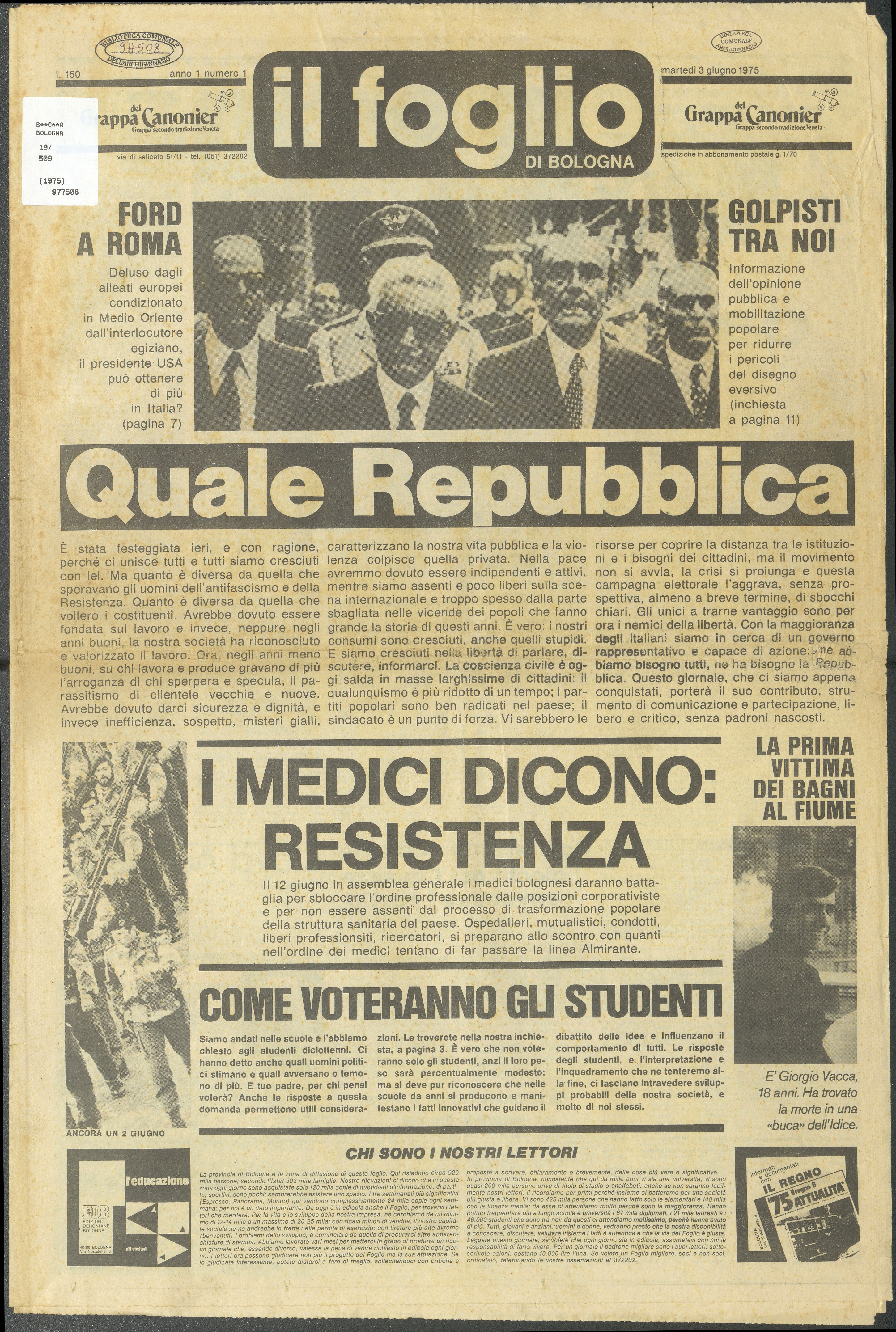 «Il Foglio di Bologna», 3 giugno 1975, p. 1.