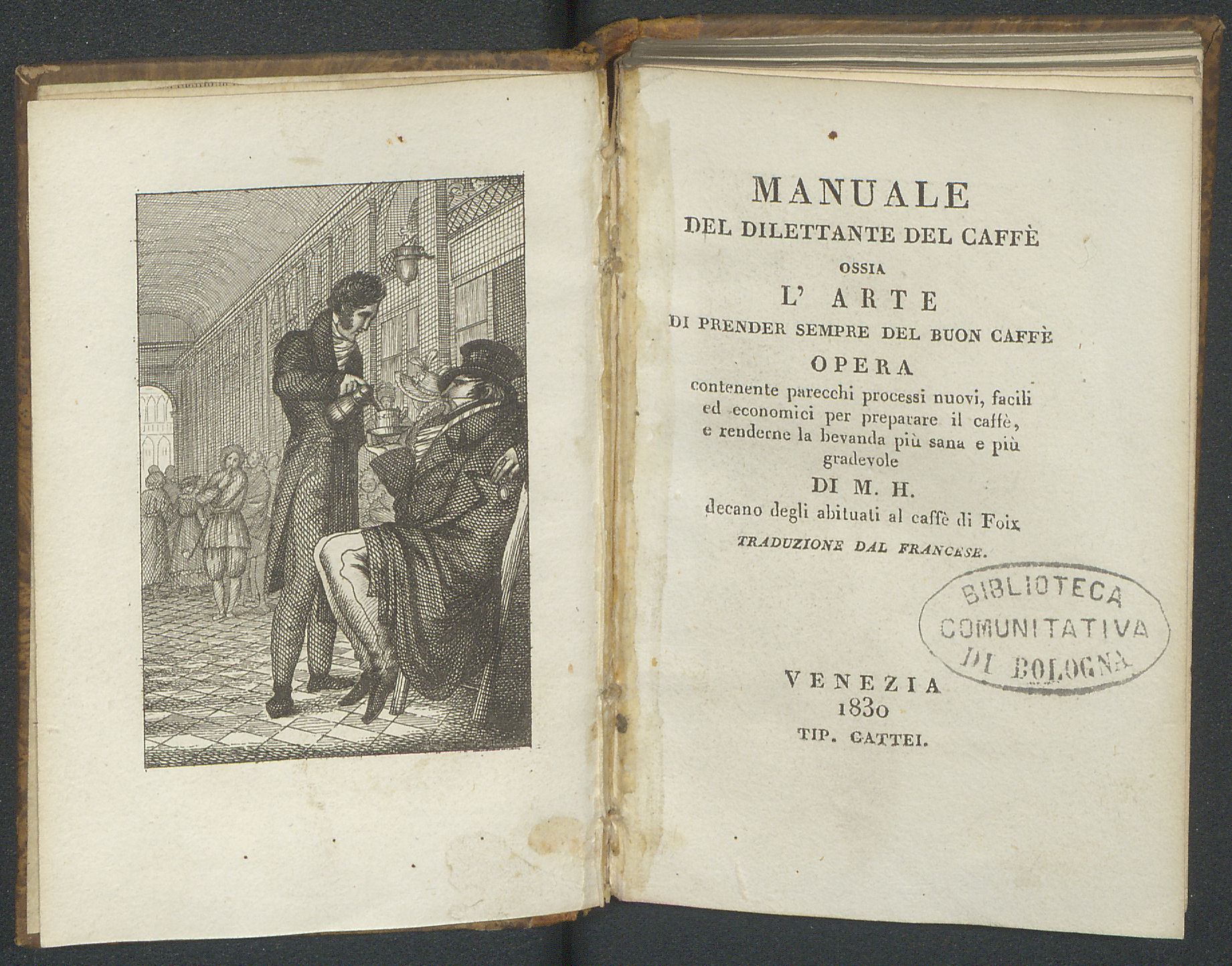 Alexandre Martin, Manuale del dilettante del caffè ossia l'arte di prender sempre del buon caffè. Opera contenente parecchi processi nuovi, facili ed economici per preparare il caffè, e renderne la bevanda piu sana e piu gradevole, Venezia, presso Stefano Minesso, 1830.